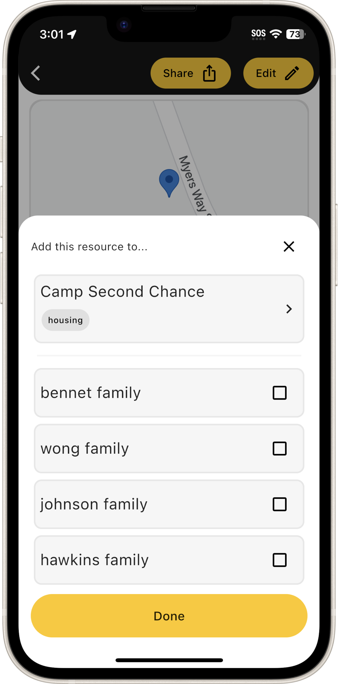 iOS app designed for Mary's Place field staff to efficiently manage resources.
