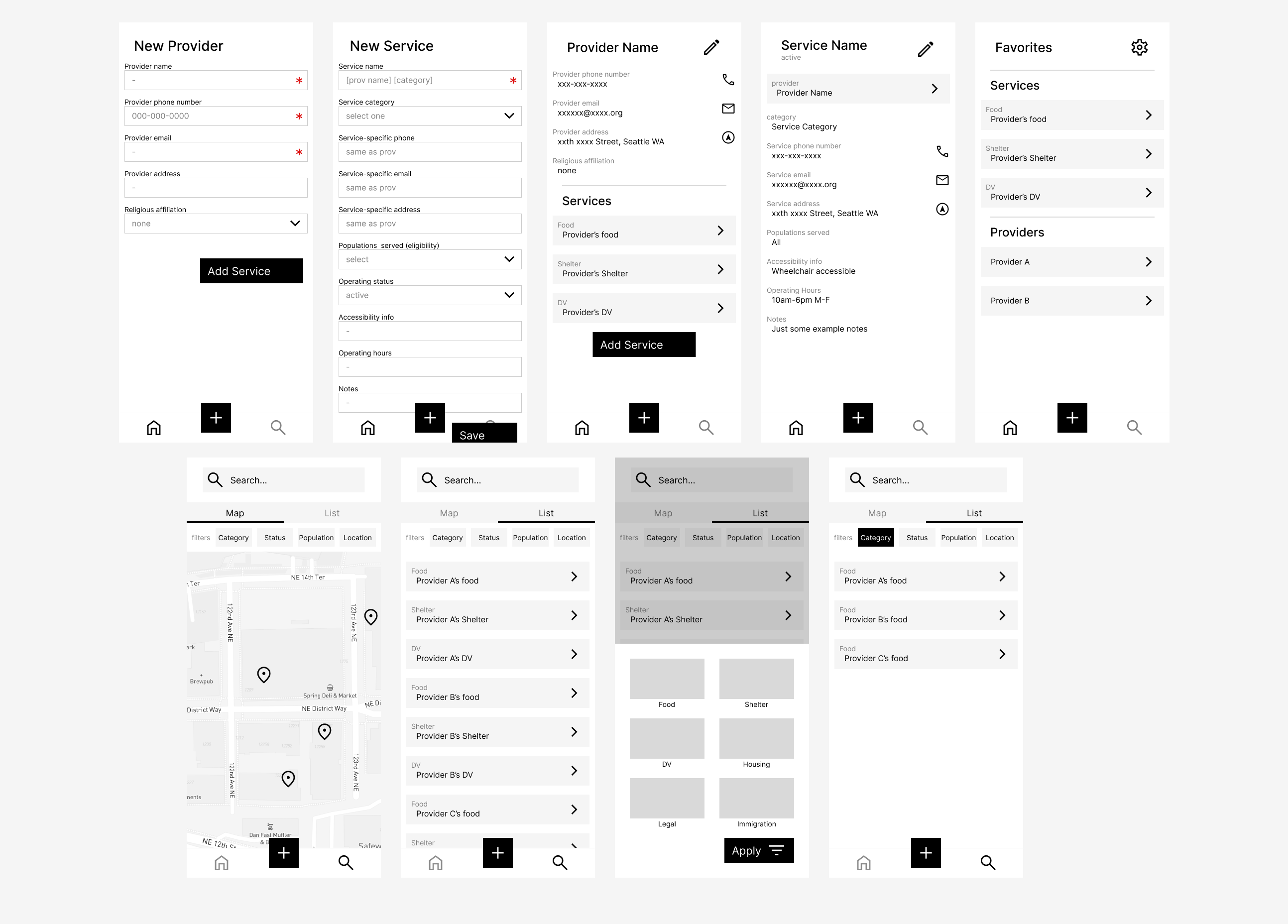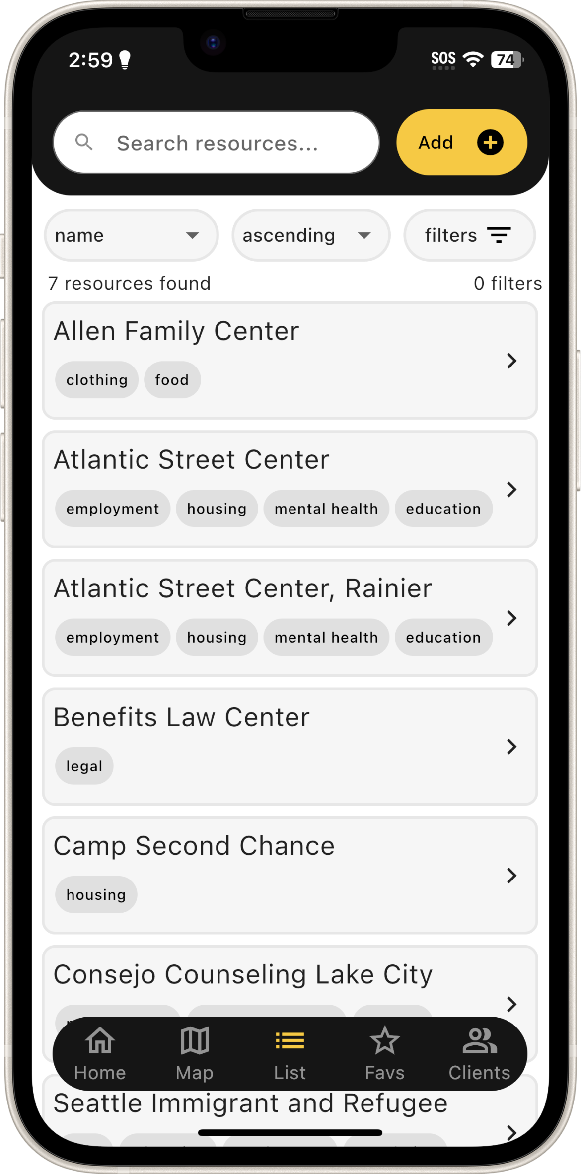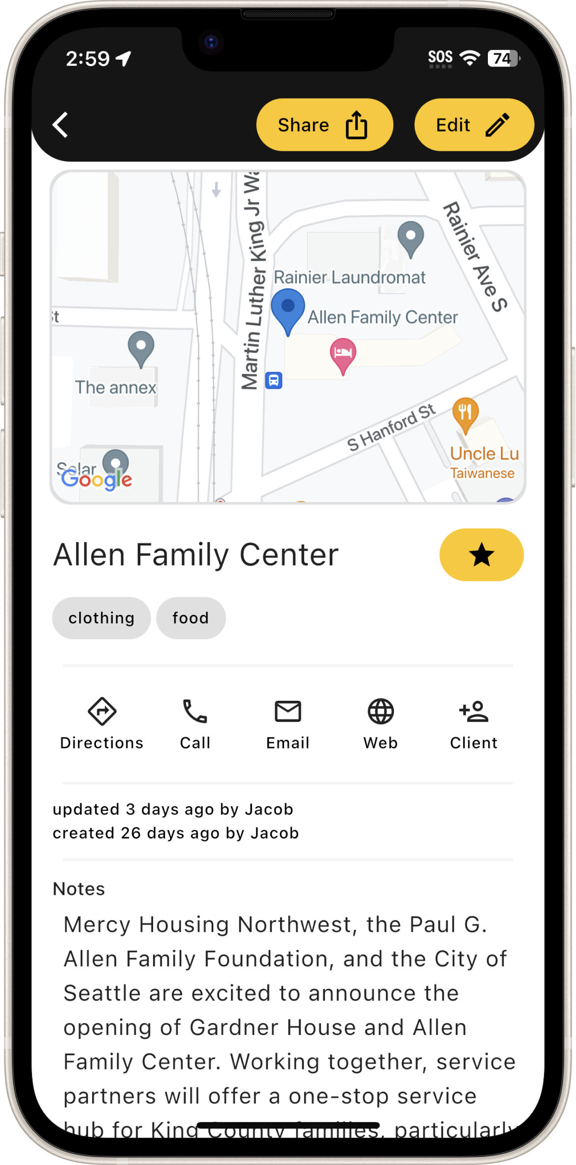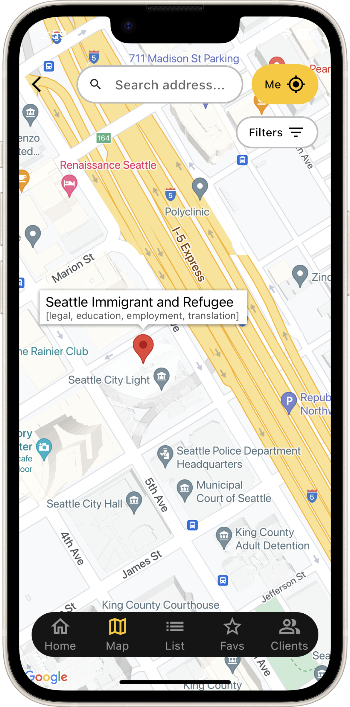 Maps enable users to quickly locate nearby resources, both near their current location and during outreach.