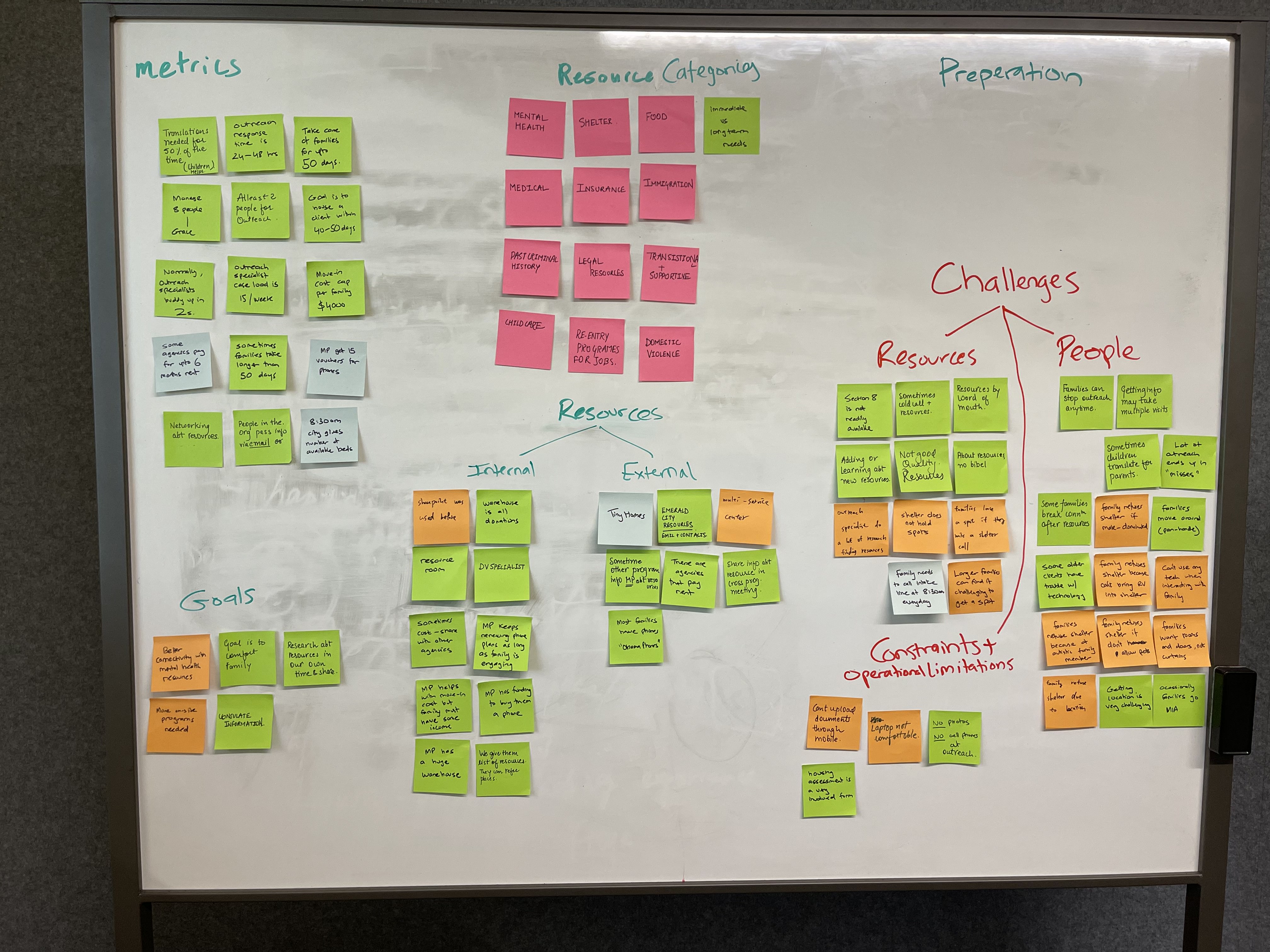 Thes questions were generated as the team's collective understanding of Mary's Place functioning and history. I choose the appropriate research tool moving forward to answer these questions.