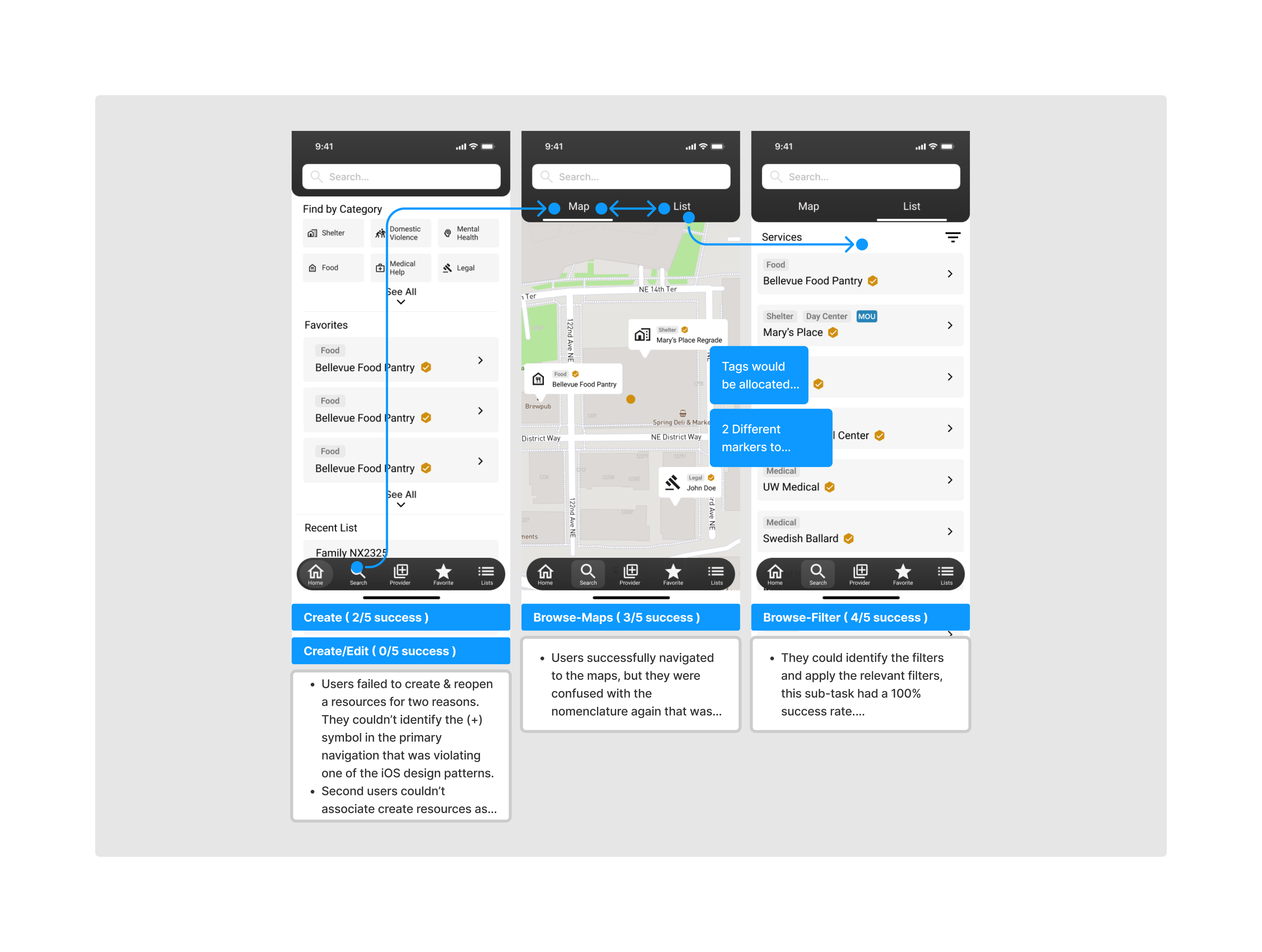 - Created new plan for usability session 2, eliminating errors caused by cosmetic issues(e.g. favorite button) and redundant nomemclature (e.g. lists and provider-services, now called resources