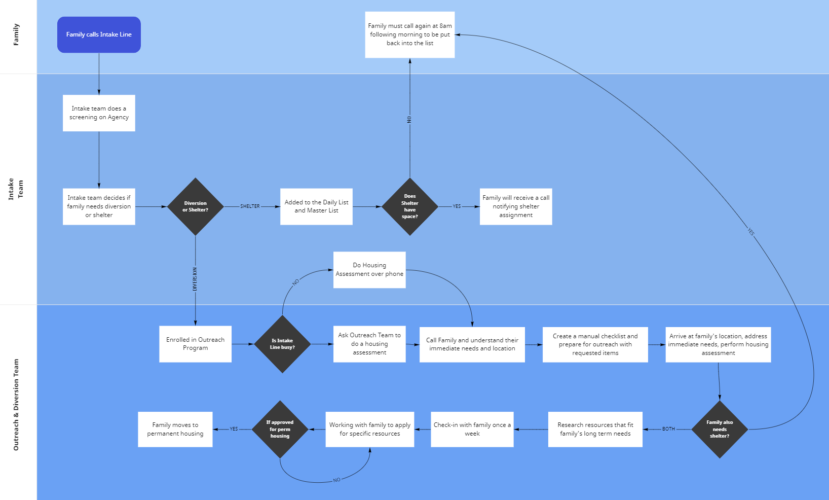 - Intake vs Outreach roles in the diversion process