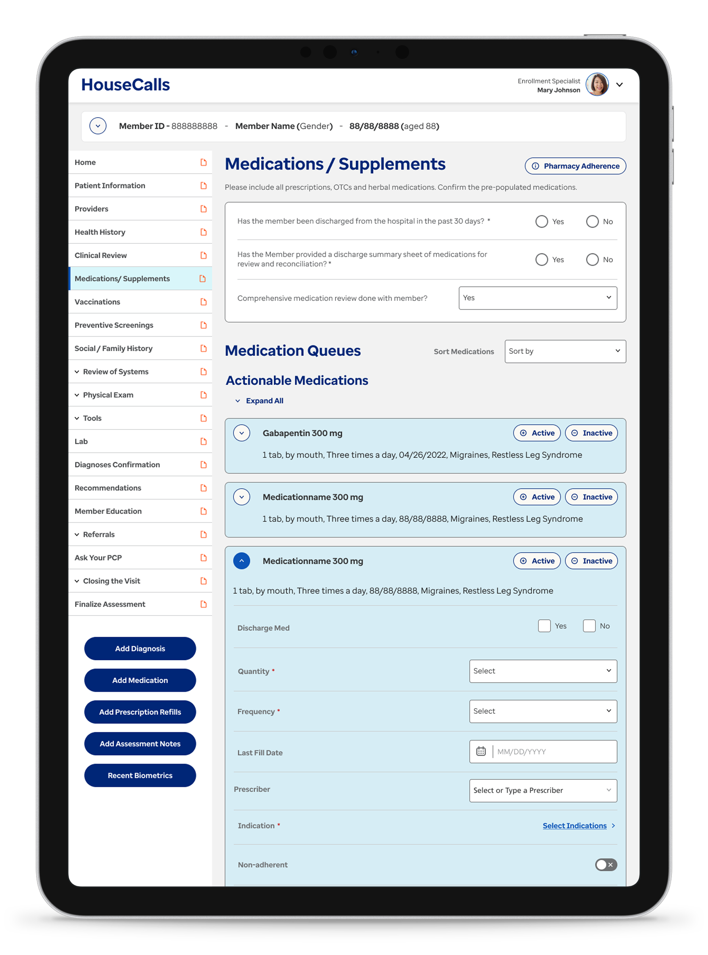 - Outlier scenarios can include caregiver not present, member diagnosed with Dimentia/Alzhemiers, original bottles not available.