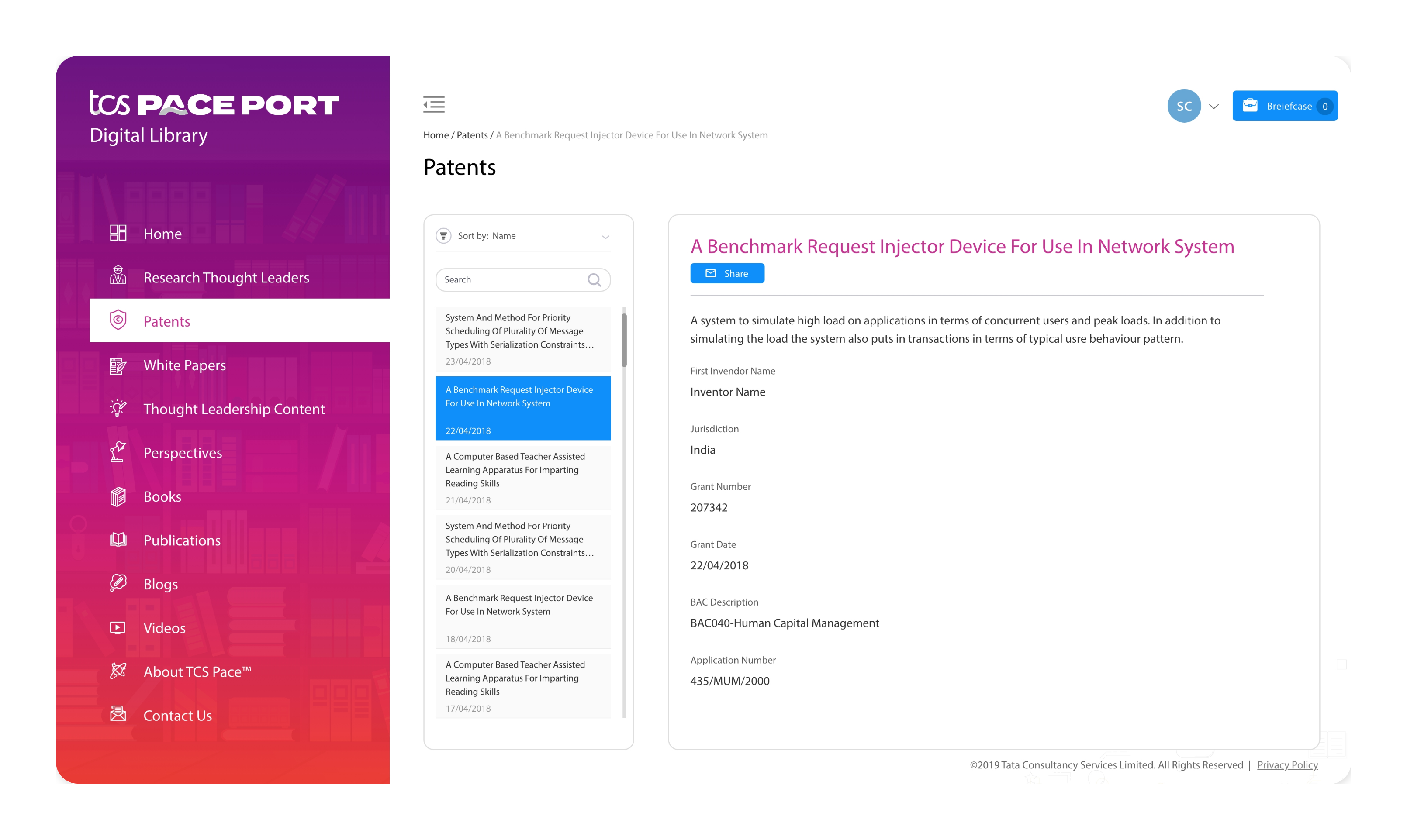 PacePort Digital Library is designed to provide high visibility of research capabilities during client visits.